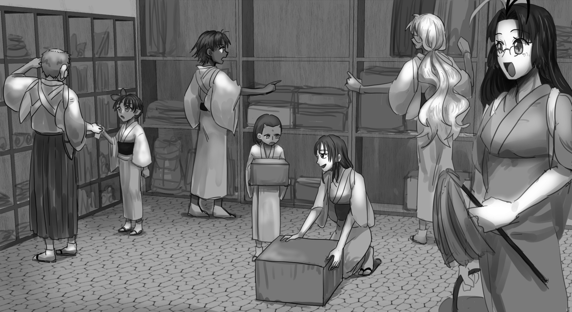 皆で売れる物をかき集めたのかな。12月だし気分を変えるためにも大掃除を兼ねましょ!ってイツ花さんに言われてそう。可愛いね。