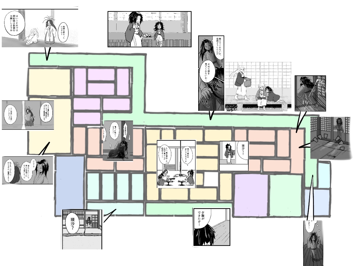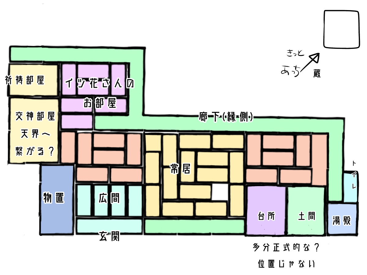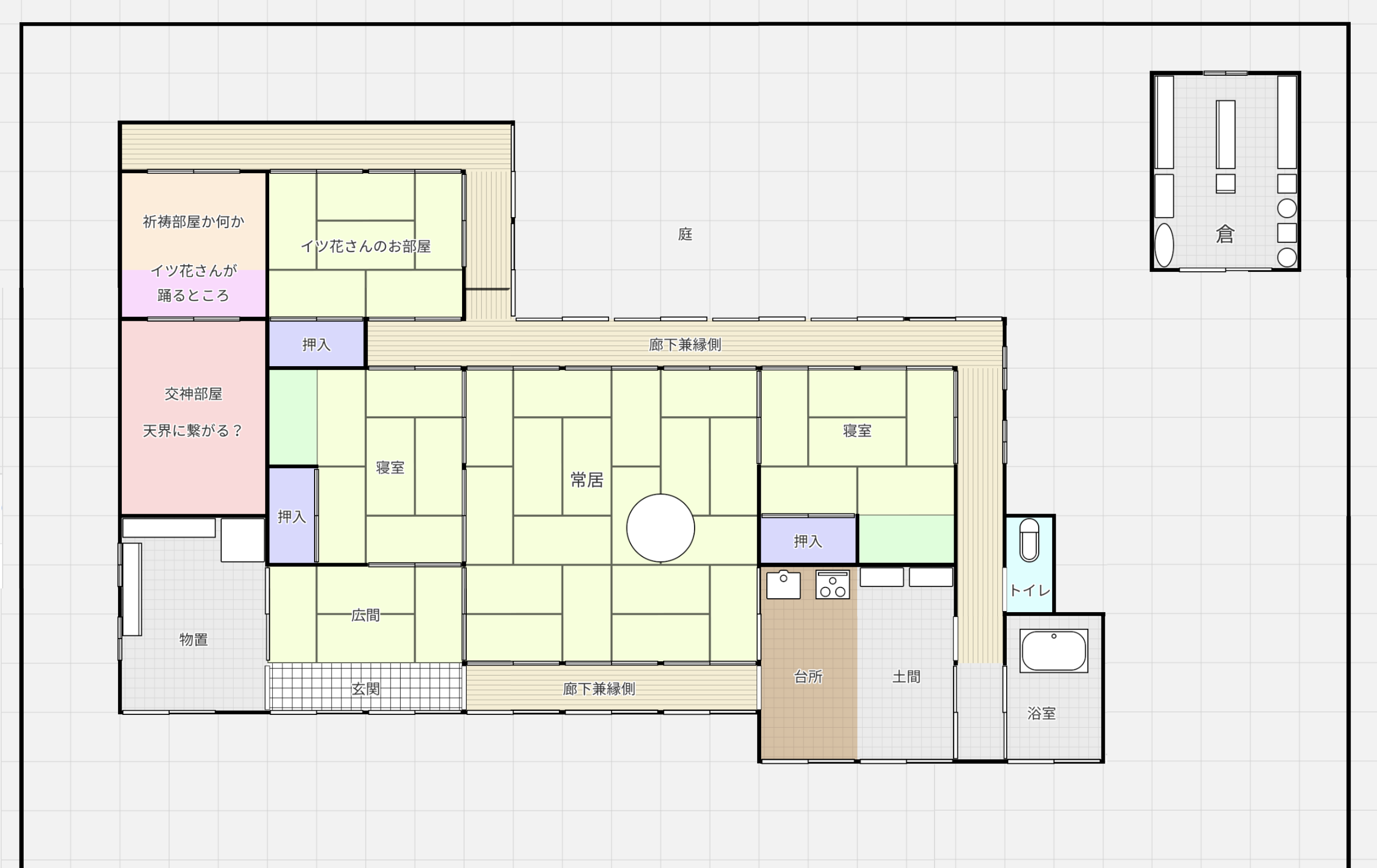 こだわりは瑛沙の朱ノ首輪漫画に合わせたかな…というところ。あと卯連くんのために縁側めっちゃ伸ばした。