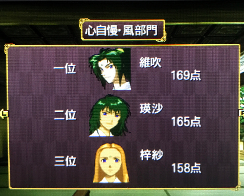 心水ドバドバなのに技水のランキングに入っていない維吹くん好き。梓紗ちゃん数値とかで困ったことない気がしたのだけど、指輪のおかげだったのかなぁ。