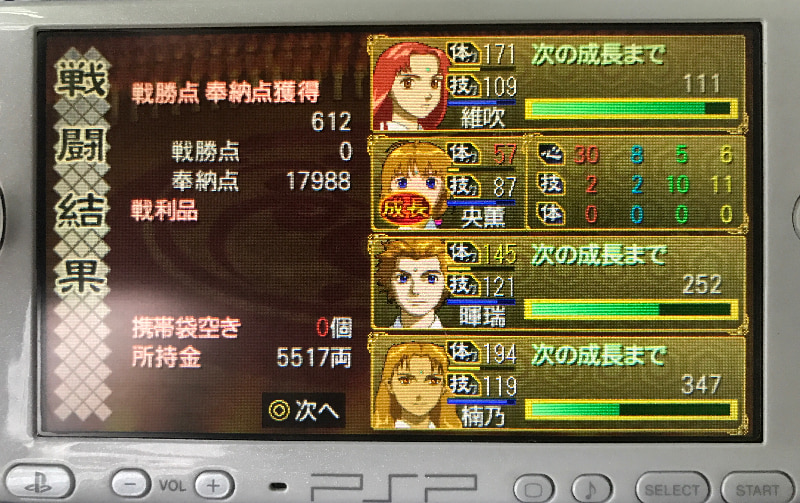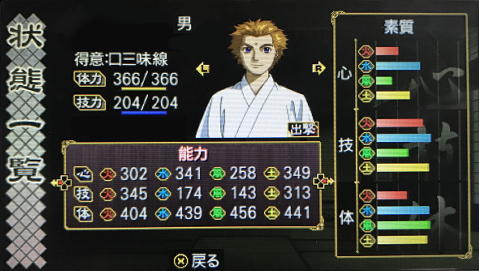 この時、勝手に暉瑞は卯連のお子だから水が一番高いと思ってたけど、最終ステータスは火345>土313>水174>風143なんだよね。
